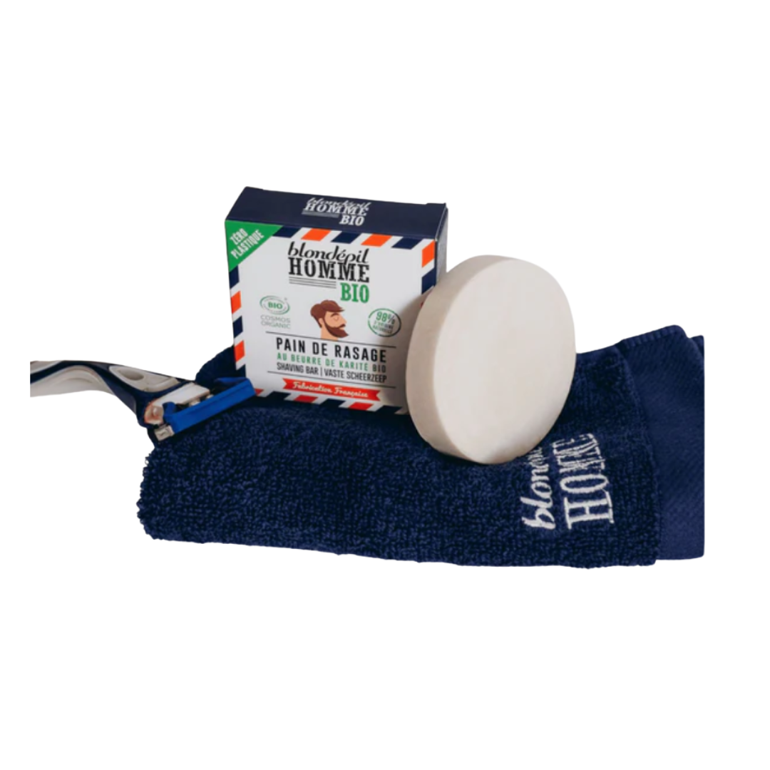 Enrichi en Beurre de Karité BIO et en Huile d’Amande Douce BIO, le Pain de Rasage facilite le rasage et agit comme un soin, pour un rituel tout doux, sans tiraillement.Grâce à son format solide et son étui 100% RECYCLABLE, il est l’alternative écologique parfaite à votre produit de rasage habituel !Nos engagements :- 98% d’ingrédients d’origine naturelle- Certifié BIO COSMOS- Formule Vegan- Emballage 100% recyclable- Fabriqué en Occitanie55mL