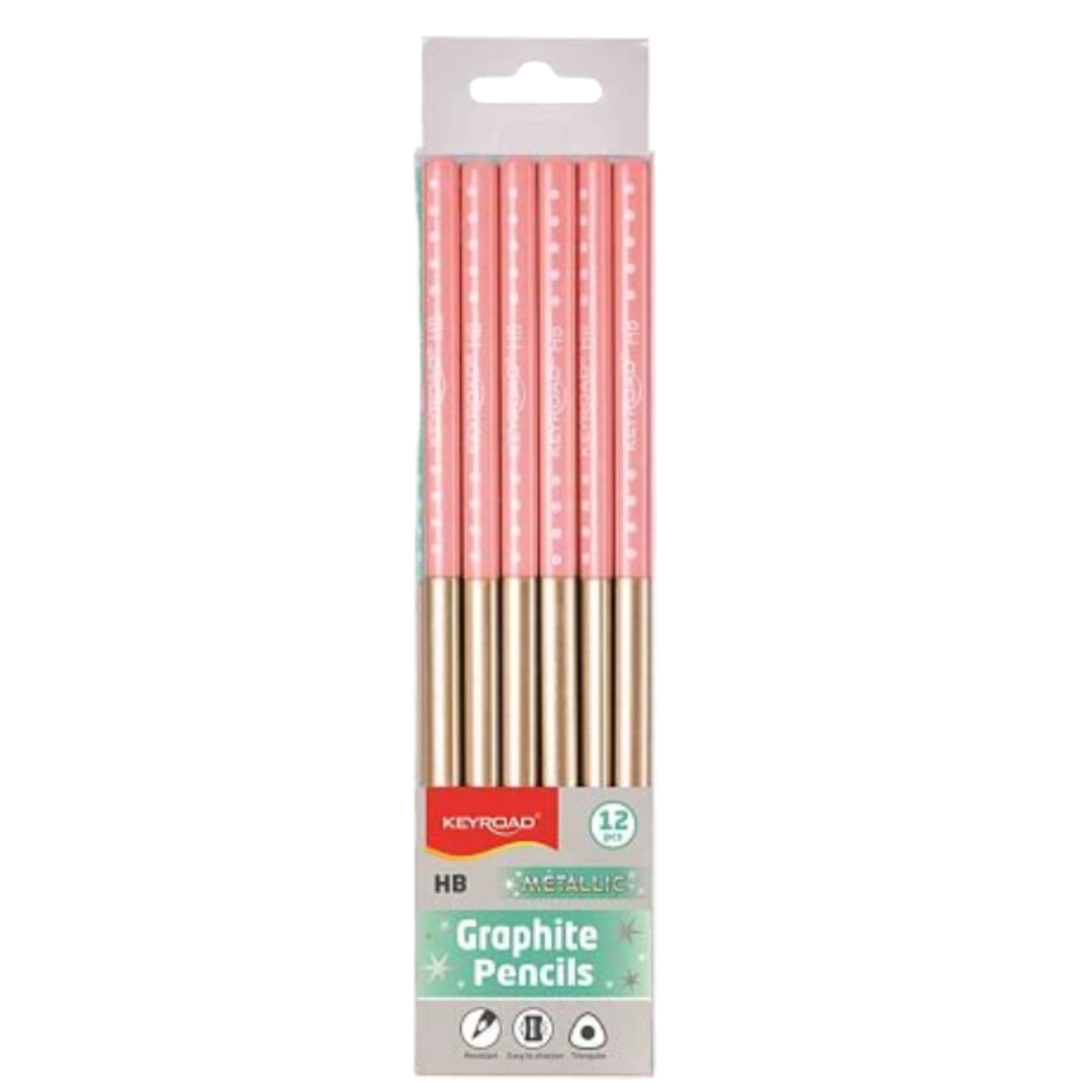 Coffret de crayons graphite KEYROAD « Metallic » HB avec gomme, 12 pièces